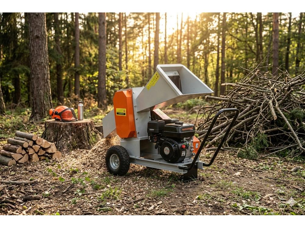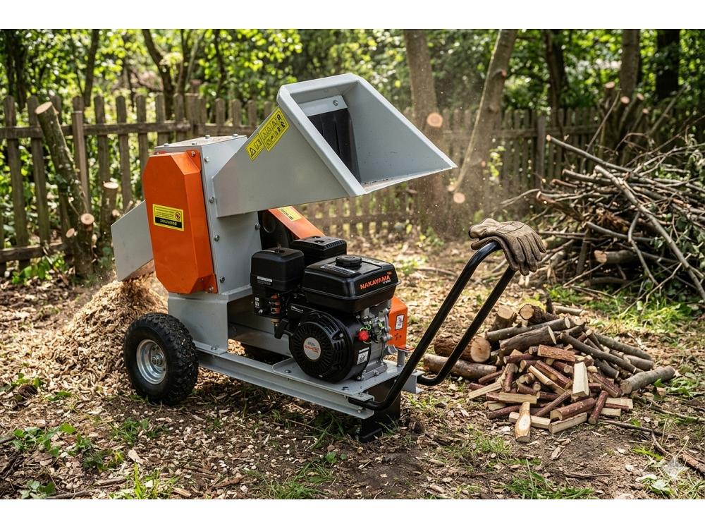 Broyeur Nakayama 7hp : transforme les branches de 60mm en bois d'allumage de 5-10cm.