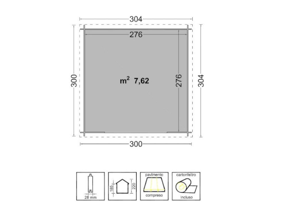 Losa Rita Chalet en bois en épicéa imprégné cm296x296xH235 Losa
