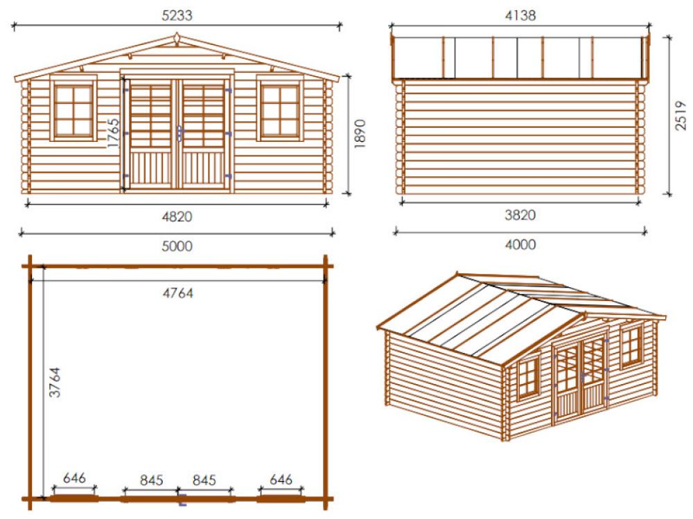 Losa Chalet en bois Emma 500x400cm blockhaus Losa double porte 2 fenêtres