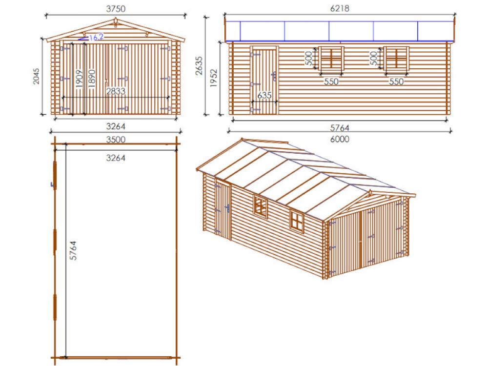Losa Epicéa imprégné Garage 350x600 cm structure blockhaus Losa
