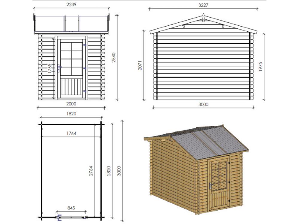Équipé d'une double porte verrouillable (84,5x176,50cm), il offre sécurité et accès pratique. Le plancher exclu vous permet de personnaliser l'installation en fonction de vos besoins. La toiture est composée de billes de 16 mm d'épaisseur, complétée par un feutre bitumé pour une protection supplémentaire.