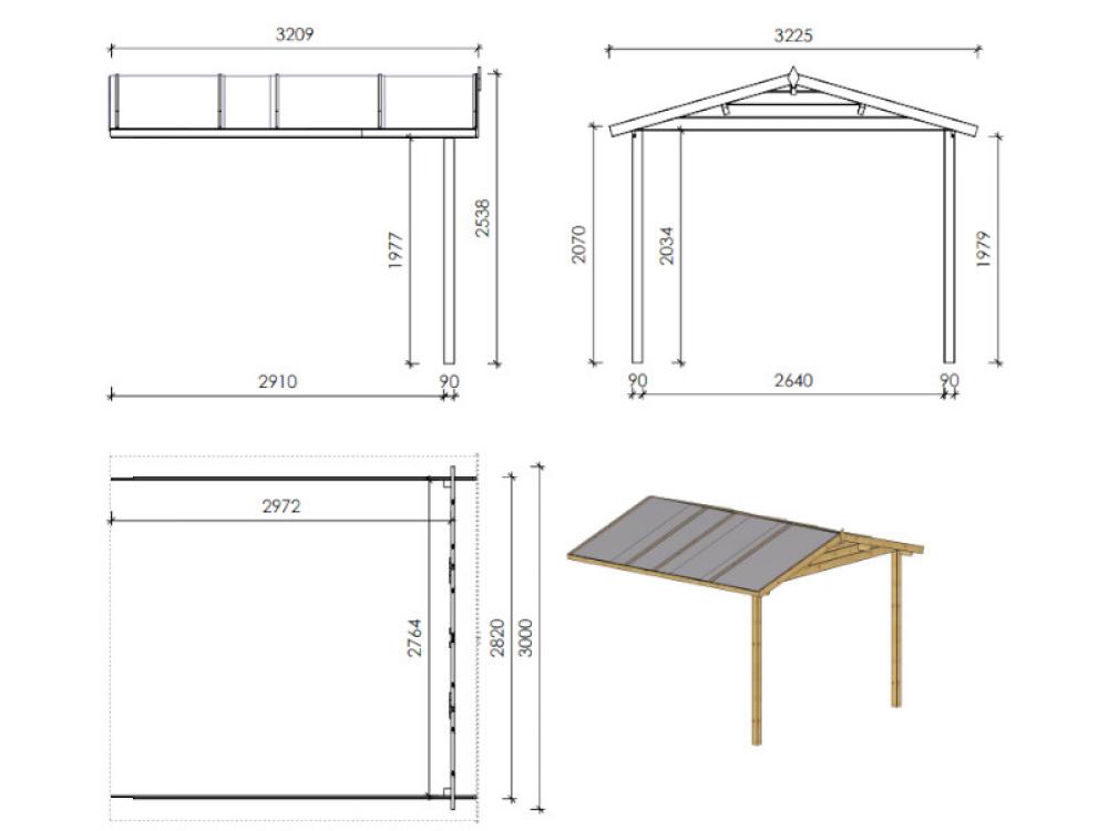 Les porches latéraux pour les cottages Lucia, Ilaria et Elena offrent une extension élégante et fonctionnelle à vos installations extérieures. Mesurant 297x276cm au sol, ces porches ajoutent un espace couvert pour profiter de l'extérieur en toute saison. Le plancher n'est pas inclus, ce qui vous permet de personnaliser l'installation en fonction de vos besoins.
