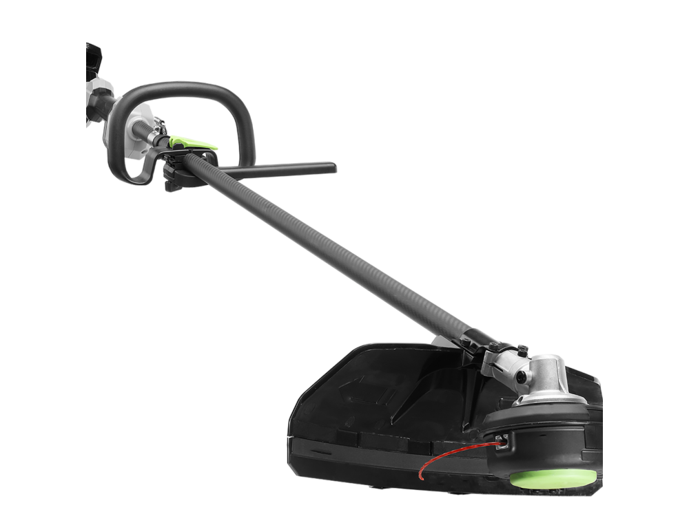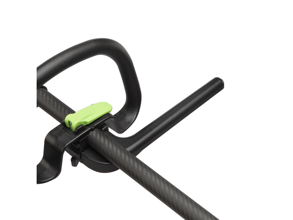 La débroussailleuse est équipée d'une poignée ergonomique à réglage rapide et d'une bandoulière unique pour une utilisation confortable de la machine, ainsi que d'un arbre d'entraînement en fibre de carbone.