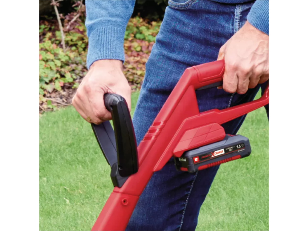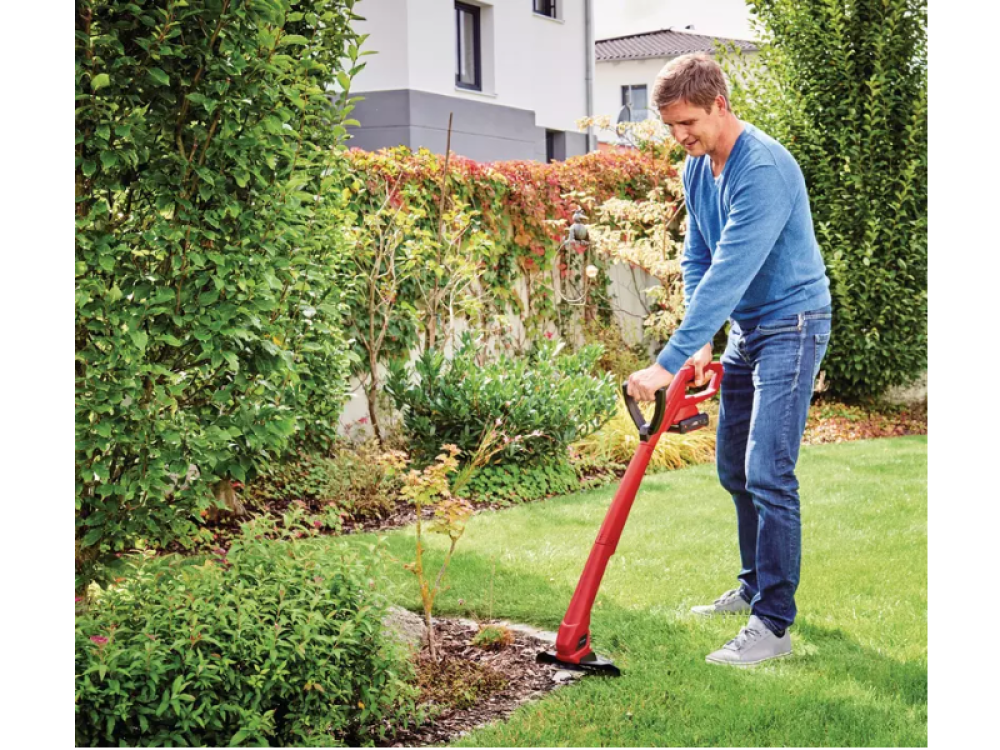 Avec une vitesse maximale de 8 500 tr/min et une largeur de coupe de 24 cm, le coupe-herbe convient aux zones herbeuses, aux bords étroits et aux espaces difficiles d'accès. La conception ergonomique est renforcée par une poignée supplémentaire pour une utilisation sûre et confortable à deux mains.