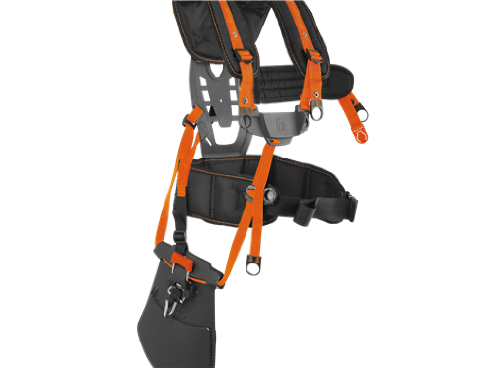 Ensemble de sangles ergonomiques avec un large support dorsal, des bretelles et une ceinture ventrale qui répartissent la charge sur une large surface d'appui. Plaque dorsale réglable pour un ajustement parfait.