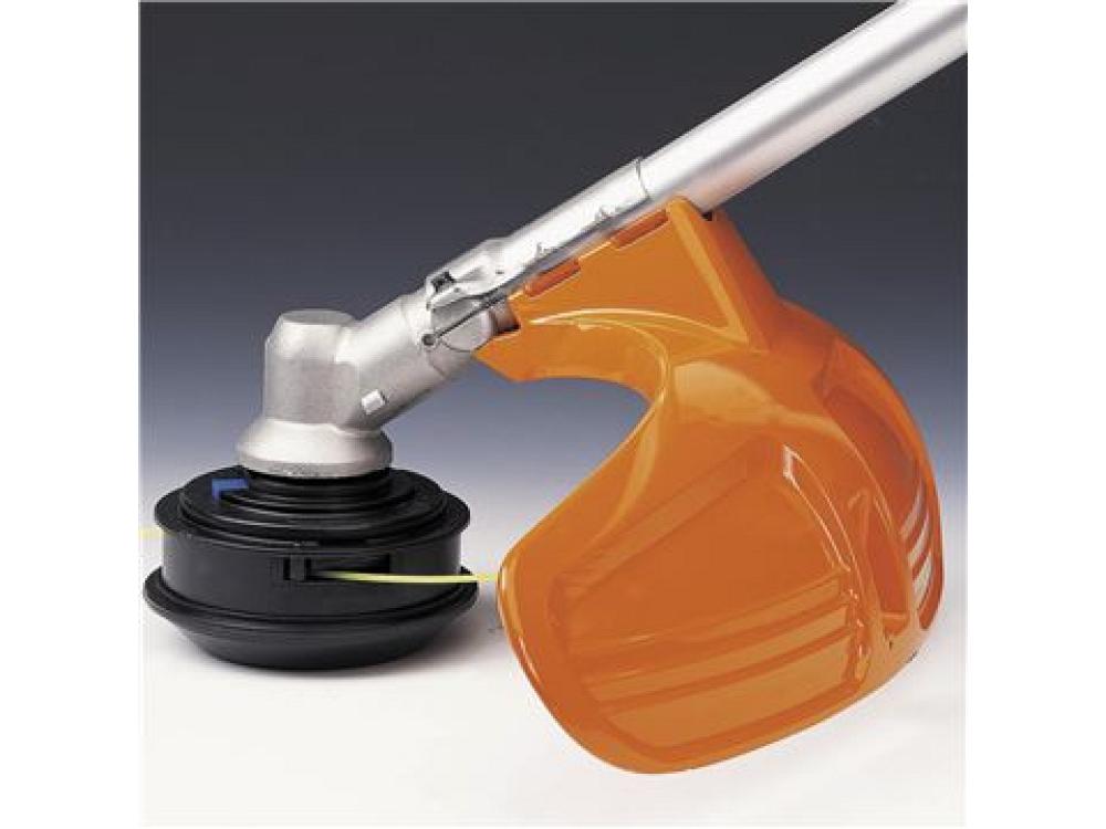 Cette débroussailleuse Husqvarna est équipée d'un système robuste de coupe à double fil de nylon pour une alimentation rapide en fil.