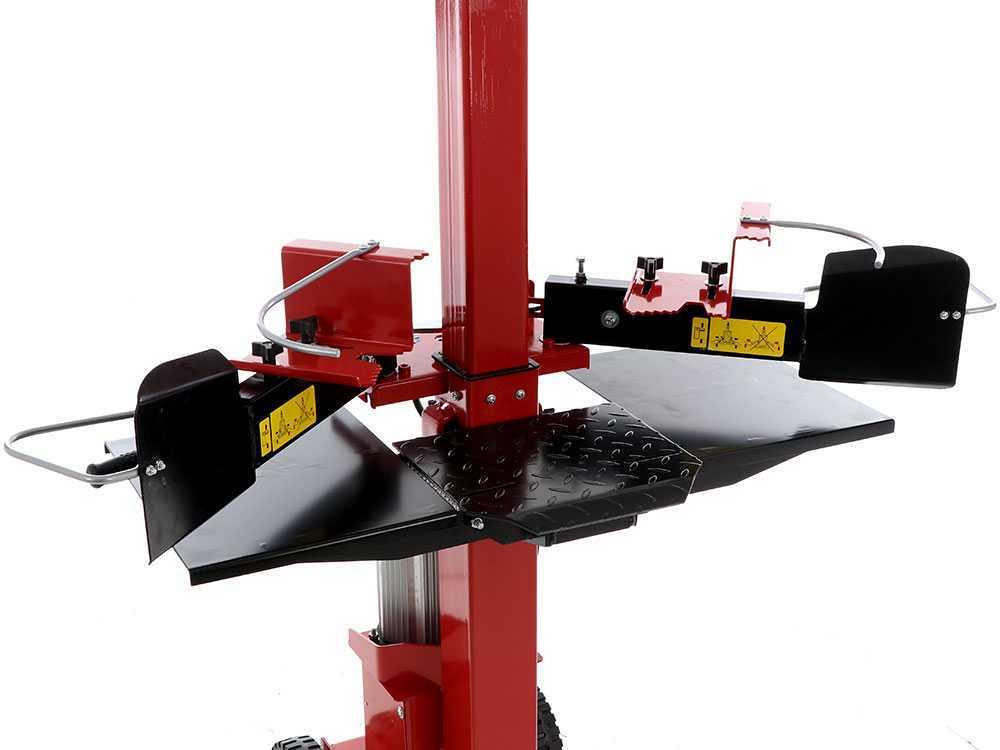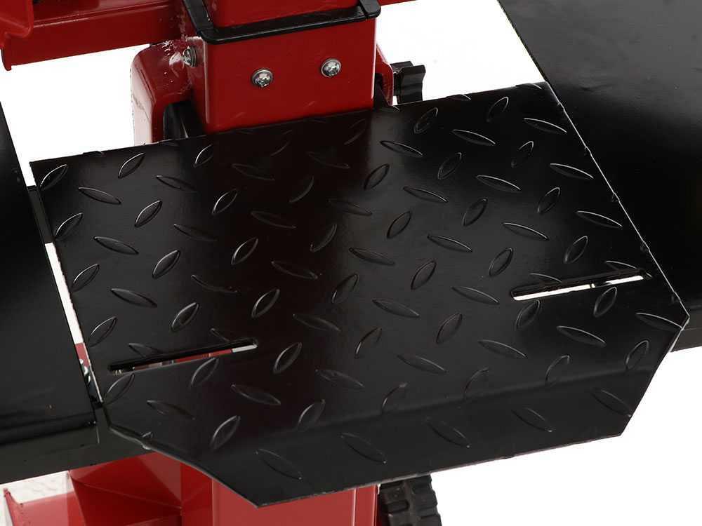 Le fendeur de bûches utilise l'action d'une pompe hydraulique qui déplace le cylindre hydraulique qui agit comme un poussoir. La force développée par ce système permet au grand coin de couper des bûches d'un diamètre de 30 cm et d'une longueur allant jusqu'à 55 cm.