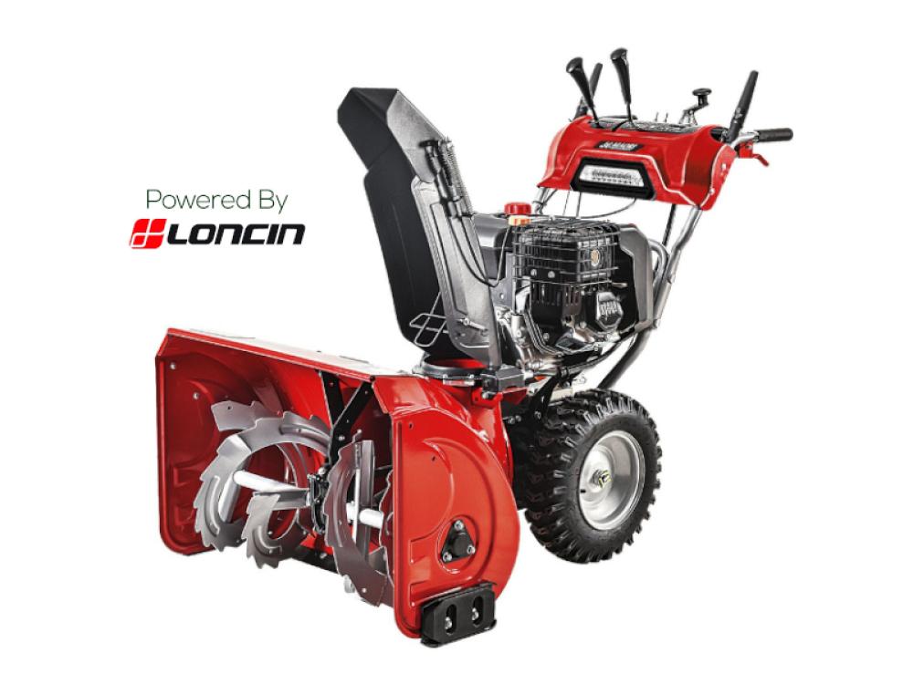 Souffleuse à neige à essence MAORI MP 866 AE. Turbine à deux étages, fraise en acier traité avec bord dentelé. Entraînement par roues, avec différentiel et contrôle de la direction. Carter en acier renforcé. Patins pour le réglage de la hauteur de travail, poignée rabattable pour un rangement facile. Tableau de bord avec commandes intégrées, phare LED. Poignées chauffantes. Cheminée d'éjection réglable et pivotante à 180° depuis le siège du conducteur. Démarreur électrique pour un démarrage facile. Moteur Loncin OHV Snow Series
