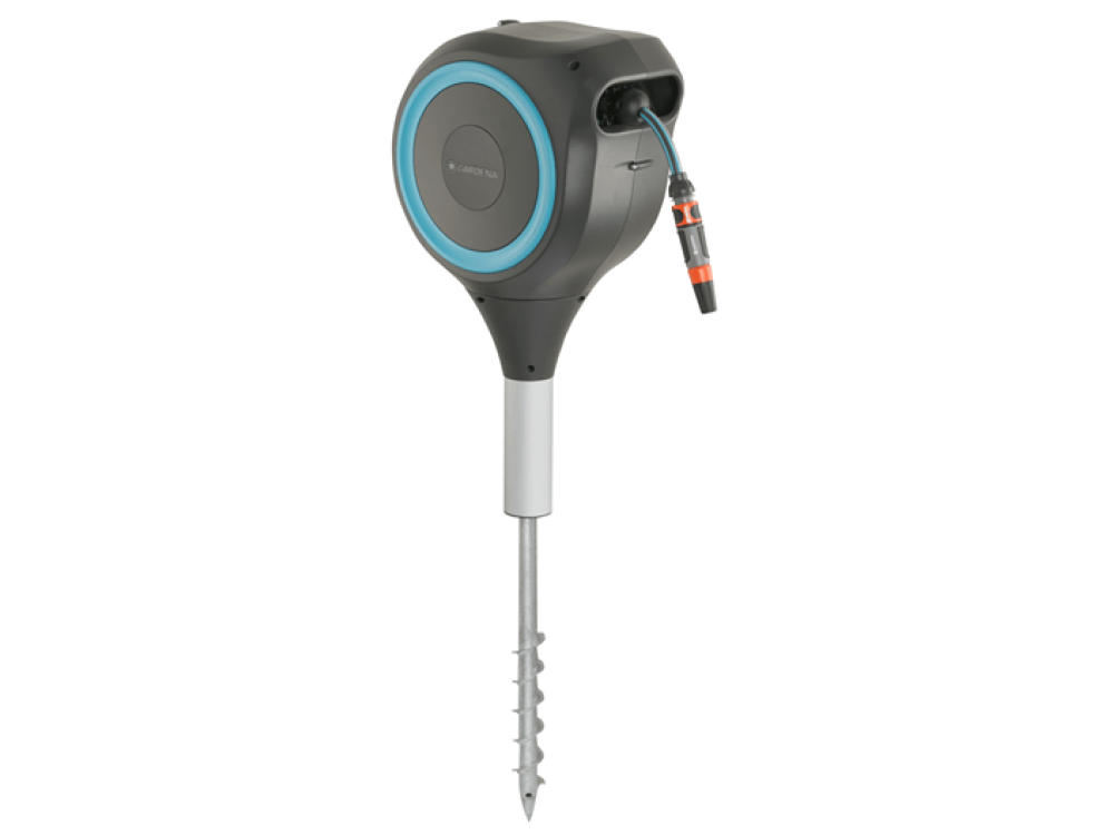 L'enrouleur de tuyau d'arrosageGardena RollUp S n'est pas une boîte ordinaire pour ranger votre tuyau. Vous pouvez facilement arroser votre petit jardintout en bénéficiant d'une liberté de mouvement maximale. Il repose sur un solide piquet métallique, ce qui signifie que vous pouvez l'installer n'importe où dans votre jardin sans endommager un mur. Le piquet est vissé dans le sol à l'aide d'une tige de montage et est donc extrêmement stable. Pour l'utiliser, il suffit de déployer le tuyau d'arrosage jusqu'à une longueur maximale de 15 mètres et vous pouvez commencer à arroser immédiatement. Les points de verrouillage courts intégrés garantissent une manipulation sans effort et fixent automatiquement le tuyau à la longueur d'extension souhaitée. Grâce à son design innovant, le Gardenia est orientable à 360° et vous permet d'atteindre tous les coins de votre jardin. Il suit vos mouvements pendant l'arrosage et empêche le tuyau d'eau de se plier ou de s'emmêler. De plus, cet enrouleur de tuyau d'arrosage vous évite de vous battre avec la manivelle, de vous pencher et de vous salir les mains lors de l'enroulement : une brève traction sur le tuyau déroulé active le ressort intégré, qui enroule le tuyau de manière entièrement automatique et fiable. Pour éviter tout blocage ou torsion, un guide de tuyau maintient le tuyau d'arrosage sur sa trajectoire et la technologie RollControl assure un enroulement sûr et contrôlé. Le matériau de haute qualité est protégé contre les rayons UV et le gel, peut rester dans le jardin toute l'année et garantit une longue durée de vie et une utilisation sans entretien. L'enrouleur est particulièrement compact et d'un design élégant, ce qui permet de l'intégrer facilement dans n'importe quel jardin. Le Garden Hose Box est livré avec un tuyau de raccordement flexible, toutes les pièces de montage nécessaires et les éléments originaux du système GARDENA, ainsi qu'un pulvérisateur à deux jets différents.