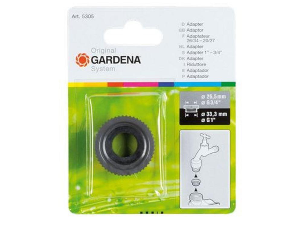 Réducteur GARDENA 5305-20 pour passer du filetage femelle 33,3 mm (G 1) au filetage mâle 26,5 mm (G 3/4).