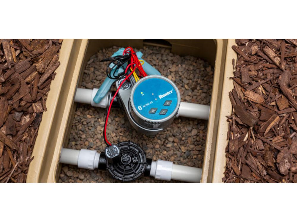 Hunter HUNTER NODE-BT-100 VALVE B Contrôleur d'irrigation de puisard à 1 station, alimenté par batterie et contrôlé par Bluetooth