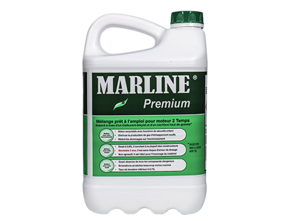 Pour les moteurs 2 temps tels que les taille-haies, débroussailleuses, tronçonneuses ou scies mécaniques, le mélange prêt à l'emploi MARLINE Premium améliore les performances de votre machine, facilite son démarrage et la protège.