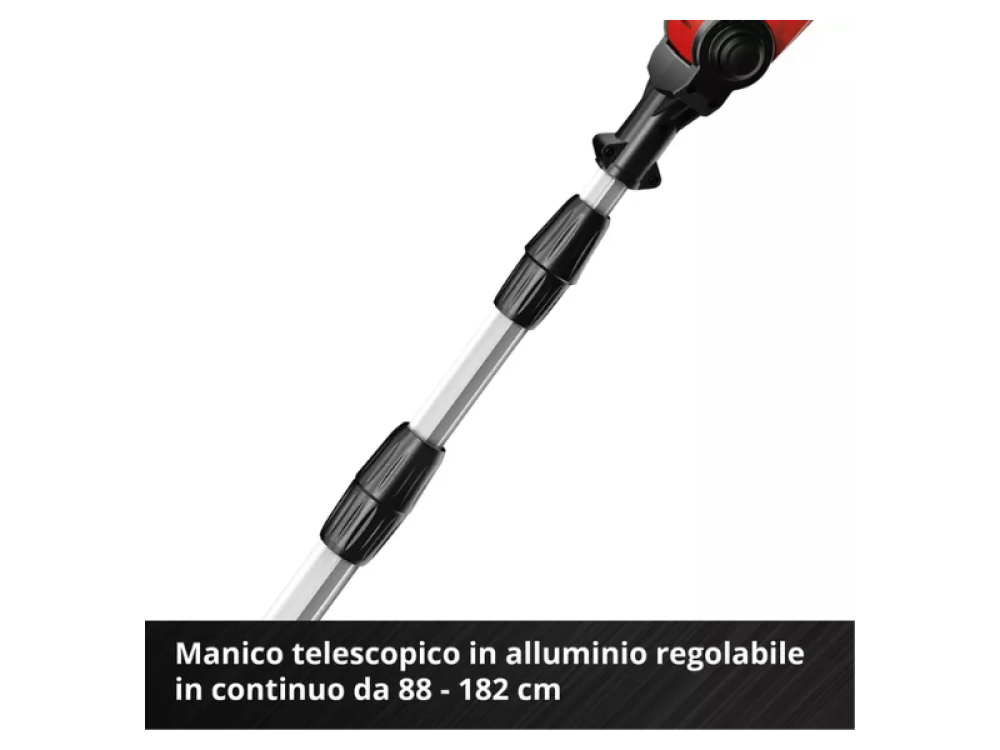 Le système de perche télescopique en aluminium réglable entre 880 et 1820 mm permet d'adapter l'outil à n'importe quelle hauteur, facilitant ainsi le travail même dans les espaces en hauteur. Lapoignée additionnelle réglable avec verrouillage rapide s'adapte parfaitement à l'utilisateur, tandis que la tête motorisée pivote sur 7 positions et lapoignée principale s'incline sur 4 positions pour plus de confort et de précision.