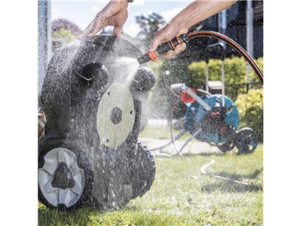 Vous pouvez laver l'extérieur et le dessous du robot de tonte Husqvarna Automower 305 à l'aide d'un tuyau d'arrosage.