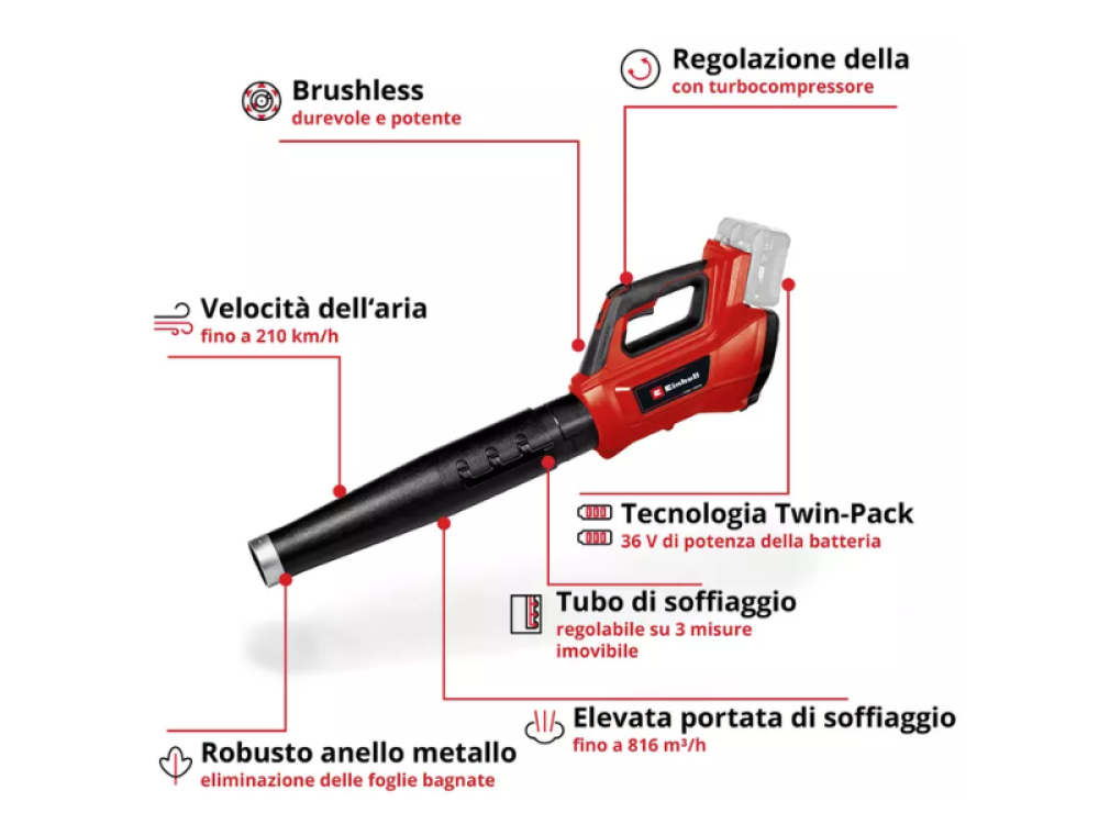 Einhell Souffleur de feuilles sans fil GP-LB 36/210 Li E-Solo Einhell 816 mc/h 210 Km/h