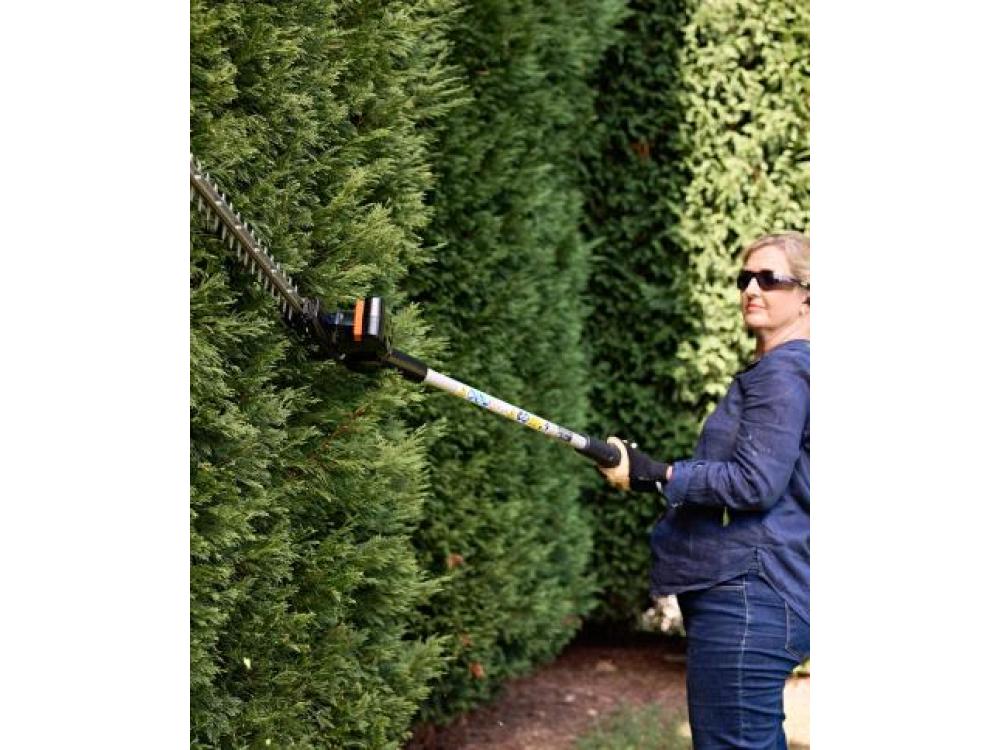 Coupez les haies hautes, larges ou difficiles avec facilité et confort. Avec une longueur totale de 246 cm et la possibilité d'ajuster facilement la tête de coupe à différents angles, vous pouvez obtenir une coupe parfaite en tout confort. Conçu pour une facilité d'utilisation et une précision de coupe.