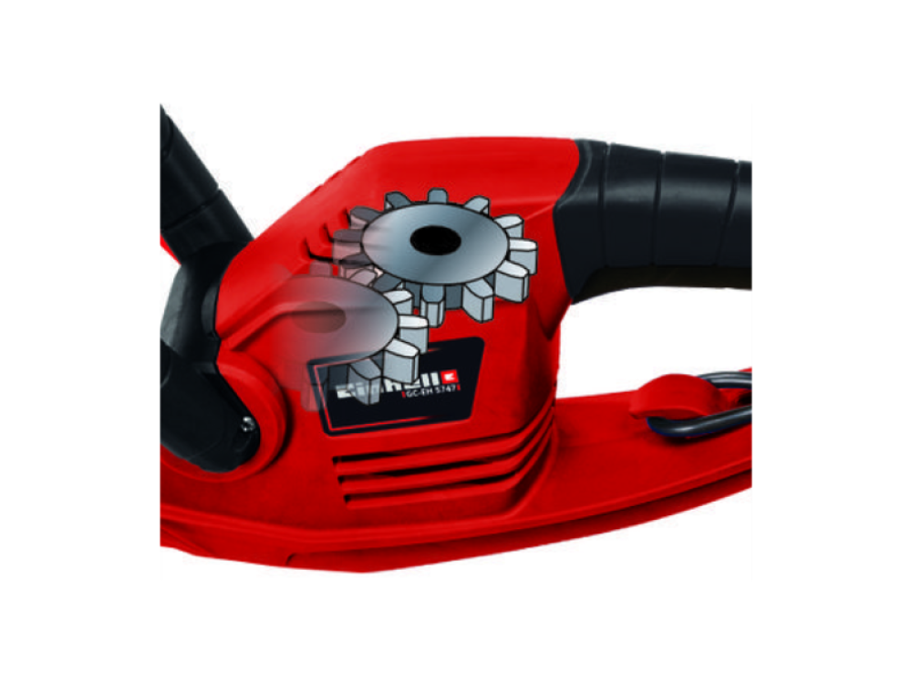 Le clip de décharge de traction empêche le câble de se débrancher pendant l'utilisation, tandis que la robuste mallette de transport permet de transporter et de ranger le taille-haie Einhell en toute sécurité. Avec le GC-EH 5747, la taille des haies et des buissons sera facile, sûre et pratique.