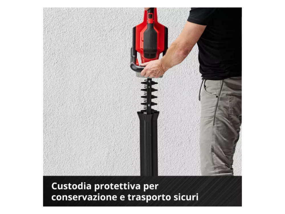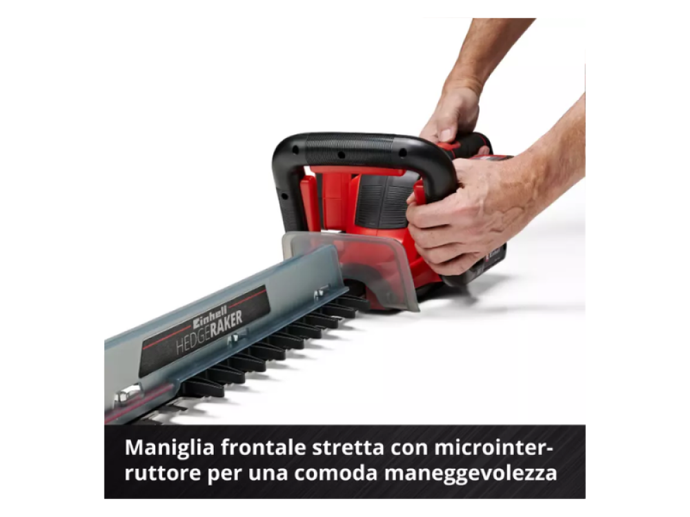 Pour une utilisation confortable, le taille-haie est doté d'une poignée avant ergonomique avec micro-interrupteur et d'une poignée pivotante qui permet de régler facilement les différents angles de coupe. En outre, le collecteur de matériaux coupés permet de garder la zone de travail propre, ce qui améliore l'efficacité.