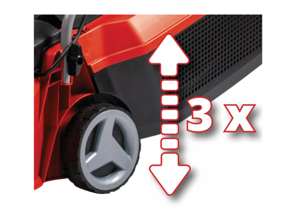 - Réglage de la hauteur de coupe: sur axes, 3 niveaux, de 30 mm à 70 mm