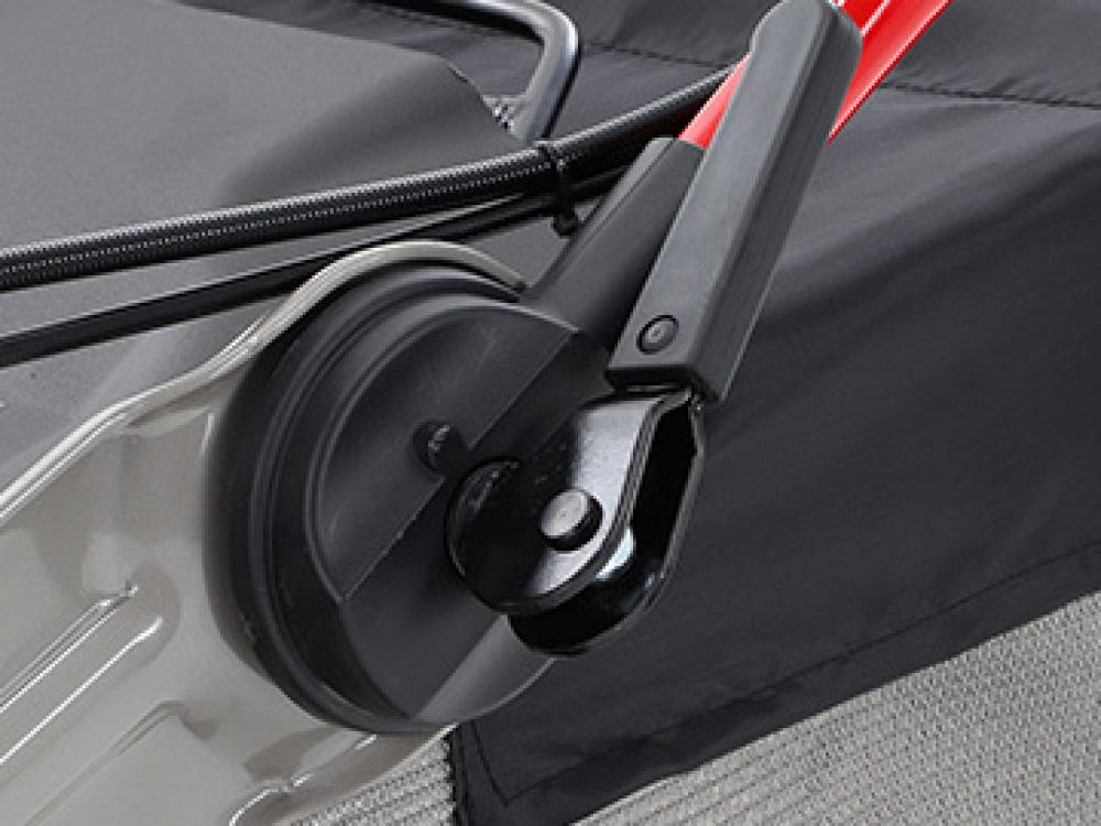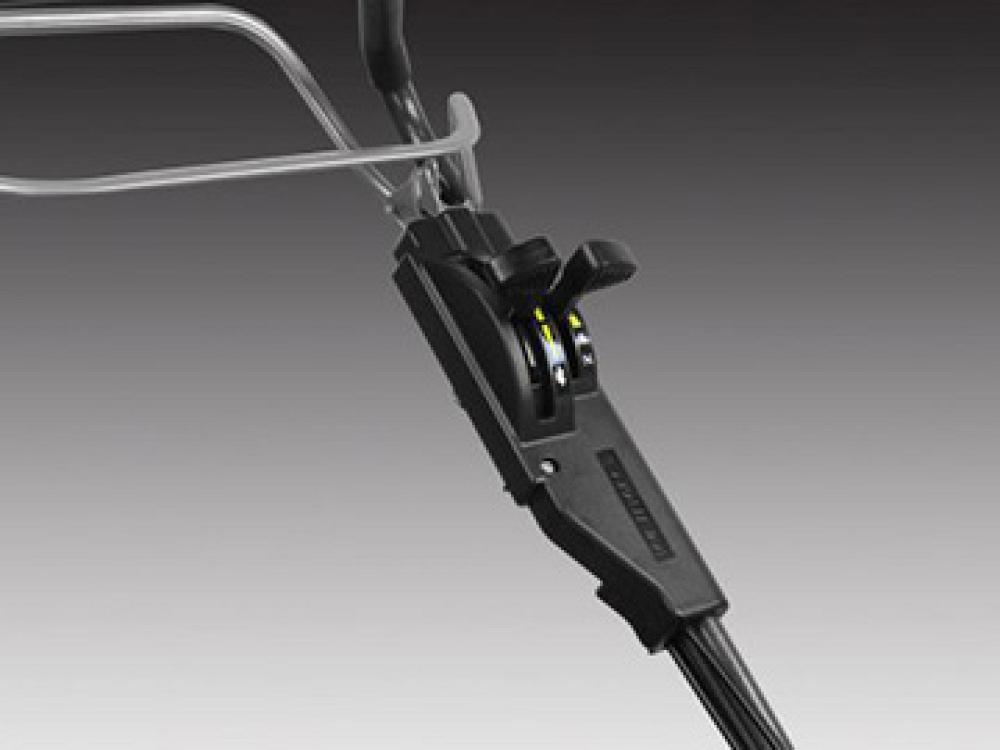 La hauteur de coupe de l'herbe peut être réglée très facilement. Pas moins de 9 positions différentes permettent d'ajuster la coupe - la hauteur la plus basse est de 1,5 cm et peut atteindre 8,5 cm.