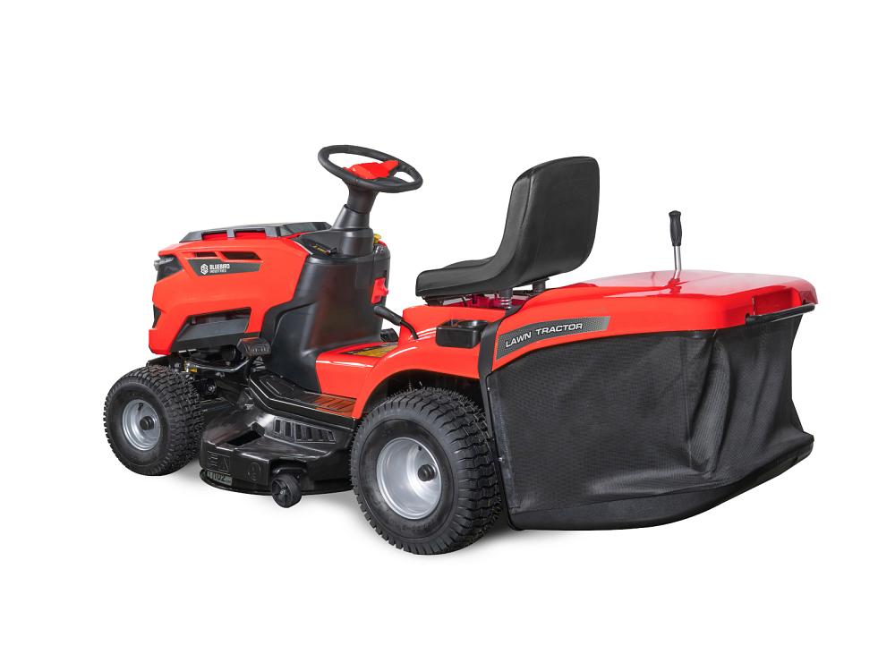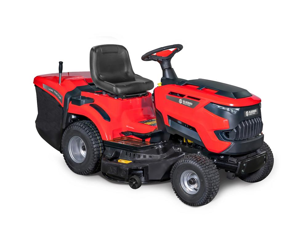 Le Bluebird LT C 102H est un tracteur de pelouse équipé d'une transmission hydrostatique qui permet de régler la vitesse en continu à l'aide de la pédale, sans devoir changer de vitesse. De plus, la capacité du bac de ramassage est de 245 litres, ce qui permet de ramasser une grande quantité d'herbe, évitant ainsi les arrêts continuels pour vider le bac.