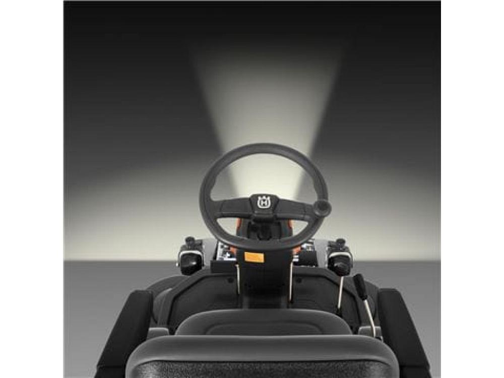 Ce tracteur de pelouse Husqvarna est doté d'un écran intuitif qui fournit des données en temps réel et des alertes au conducteur par le biais de symboles visuels et de sons d'avertissement.