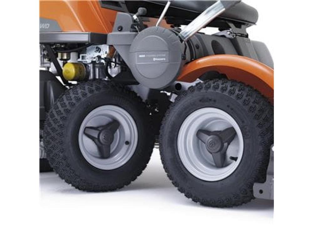 Le système de direction articulée unique de ce tracteur Husqvarna permet aux roues arrière de pivoter sous la machine. Il en résulte un haut niveau de manœuvrabilité avec un rayon non coupé minimum en pleine direction.