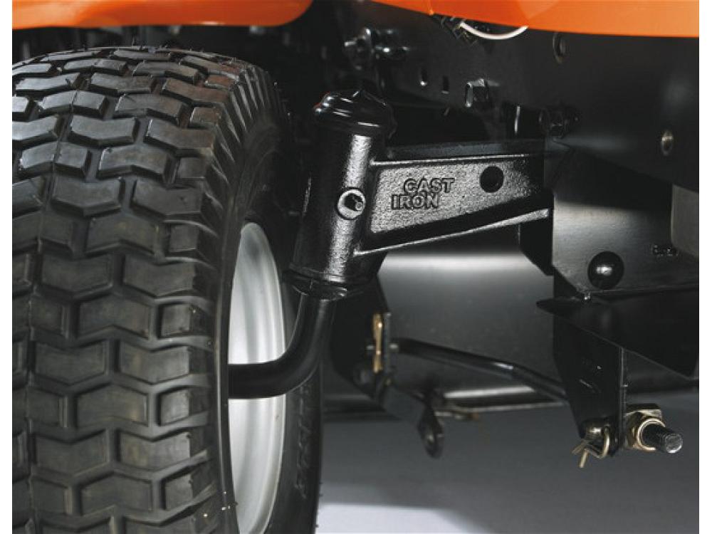 Le plateau de coupe de 97 cm est recouvert d'un revêtement en poudre pour augmenter la durabilité et la résistance à la corrosion. Le réglage de la hauteur de coupe est facilement accessible pour une meilleure ergonomie : le plateau de coupe assisté par un ressort facilite encore le réglage. De plus, le plateau de coupe est équipé de roues anti-scalp, qui réduisent le risque d'orniérage lors des travaux sur des pelouses irrégulières.