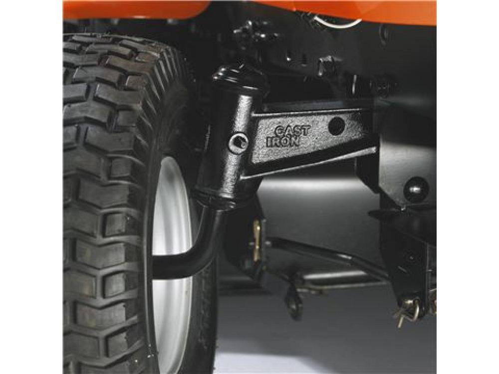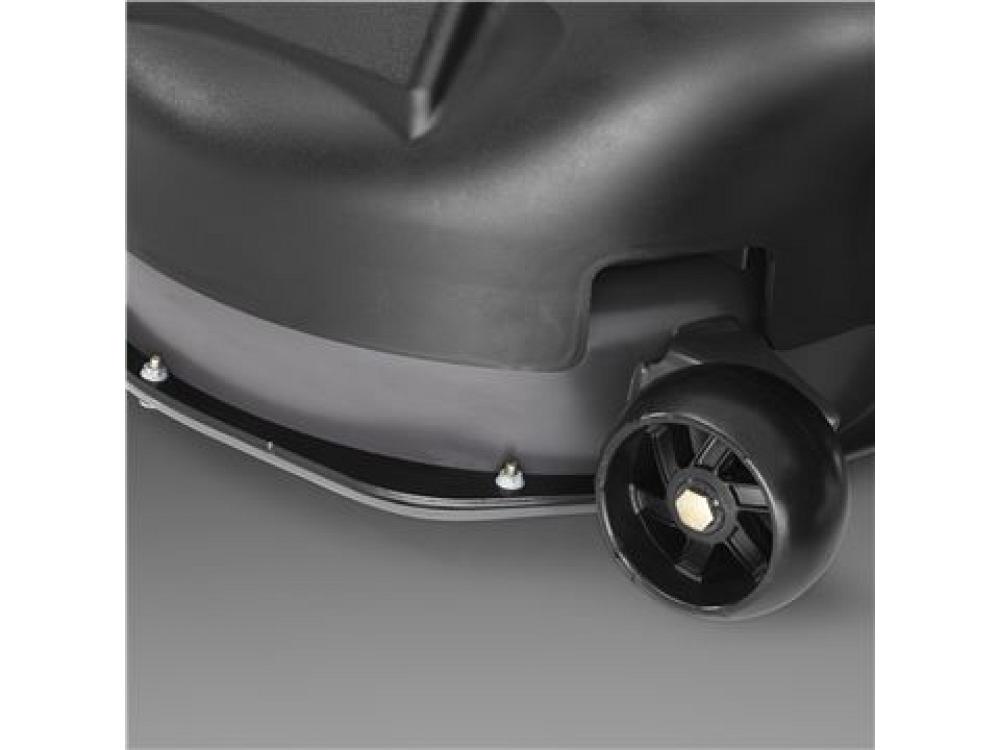 Le plateau de coupe est équipé de roues anti-scalp de 107 cm revêtues de poudre pour augmenter encore la durabilité et la résistance à la corrosion, tandis que le grand siège réglable se déplace vers l'avant en l'abaissant ou vers l'arrière en le relevant.