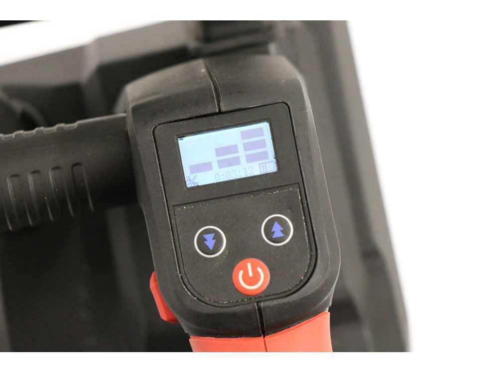 Elle est équipée de 3 vitesses réglables grâce aux boutons situés sous l'écran LCD, qui permettent également de contrôler les heures de travail.