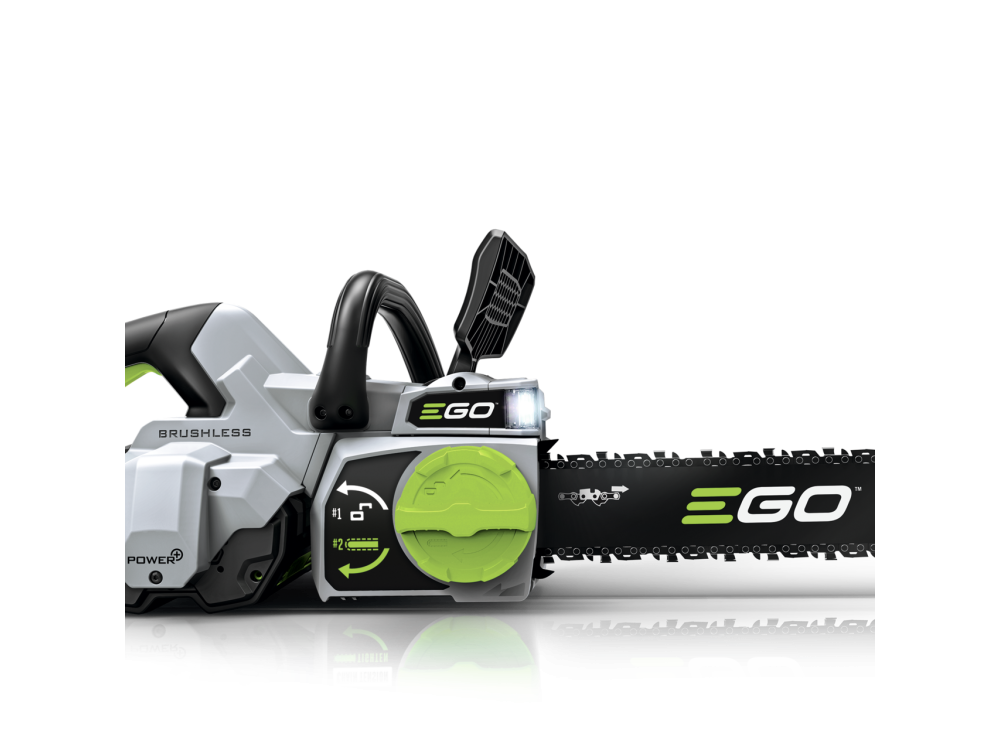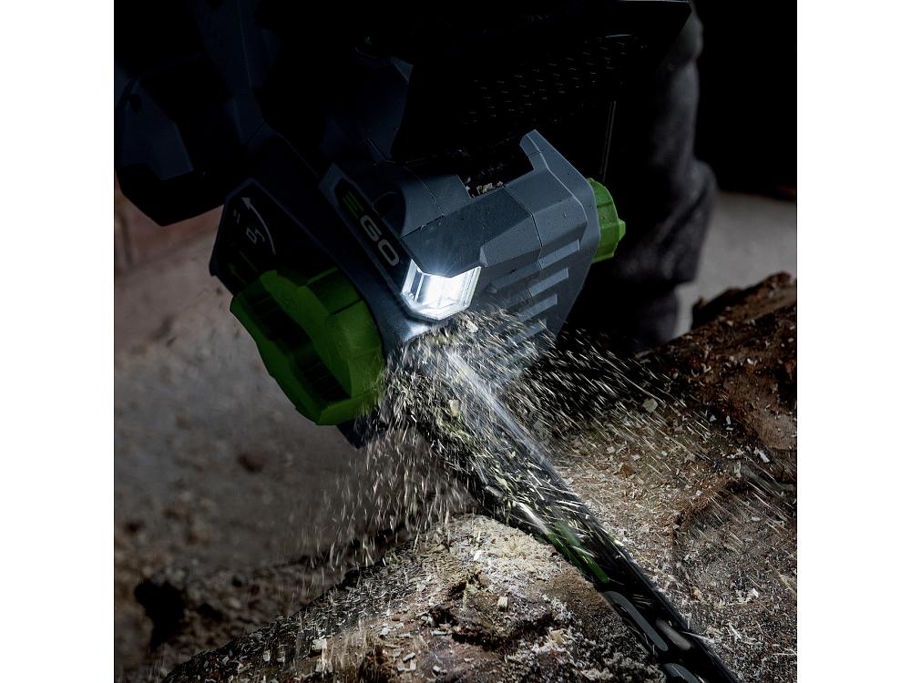 Cette tronçonneuse sans fil EGO Power sera également particulièrement confortable à utiliser dans des conditions de faible luminosité grâce à un puissant éclairage LED.