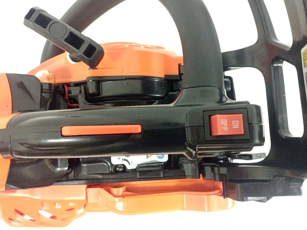 De plus, la boucle de corde permet d'attacher rapidement et facilement la tronçonneuse au harnais d'escalade. L'interrupteur d'arrêt revient automatiquement en position ON pour faciliter le démarrage de la tronçonneuse Kontiky.