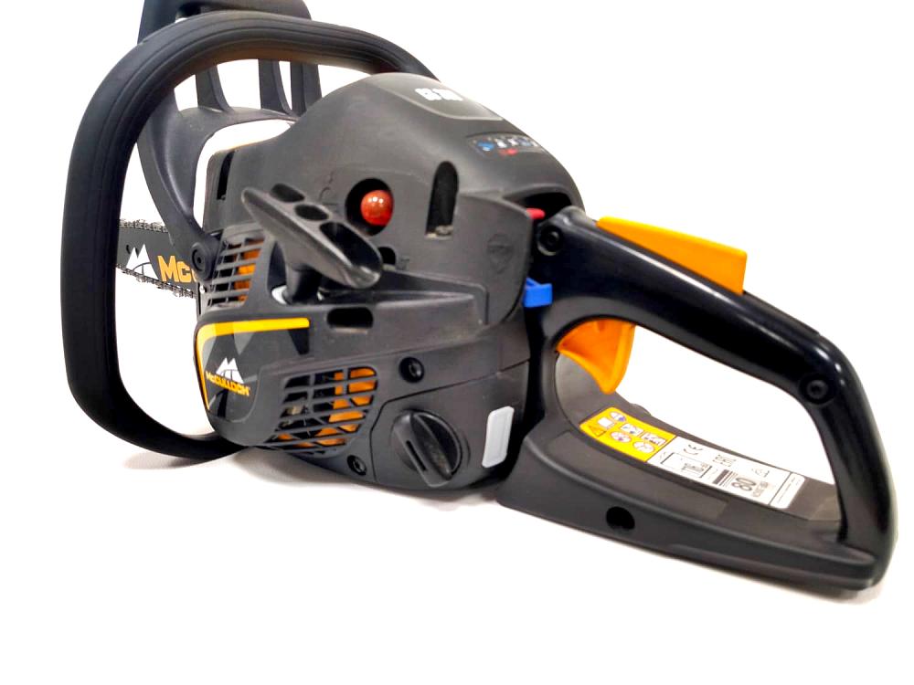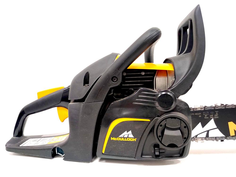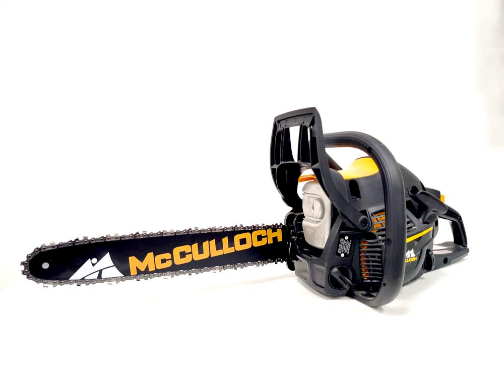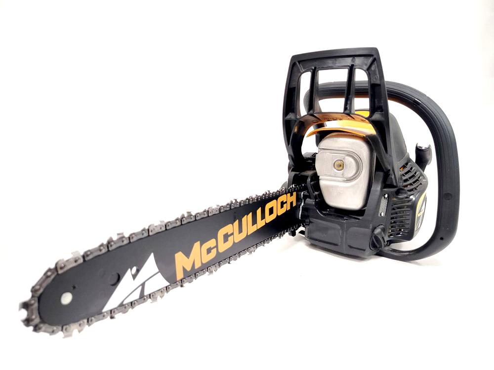 La tronçonneuse à essence McCulloch, avec son puissant moteur 2 temps d'une cylindrée de 38,2 cc et d'une puissance de 1,4 KW (1,9 Hp), équipée d'un guide-chaîne de 16" 40 cm, est idéale pour un usage domestique et professionnel.