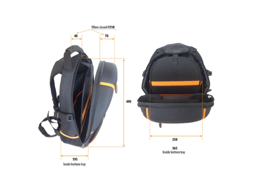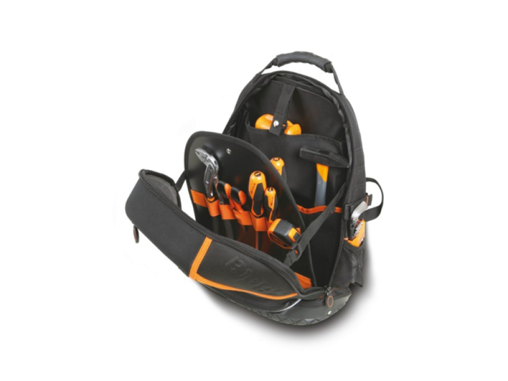 À l’intérieur, un panneau porte-outils amovible facilite l’accès rapide aux outils lors des travaux de maintenance, installations ou interventions sur site. Le dos ergonomique rembourré, la poignée rembourrée et les bretelles réglables assurent un transport confortable pendant une utilisation prolongée.