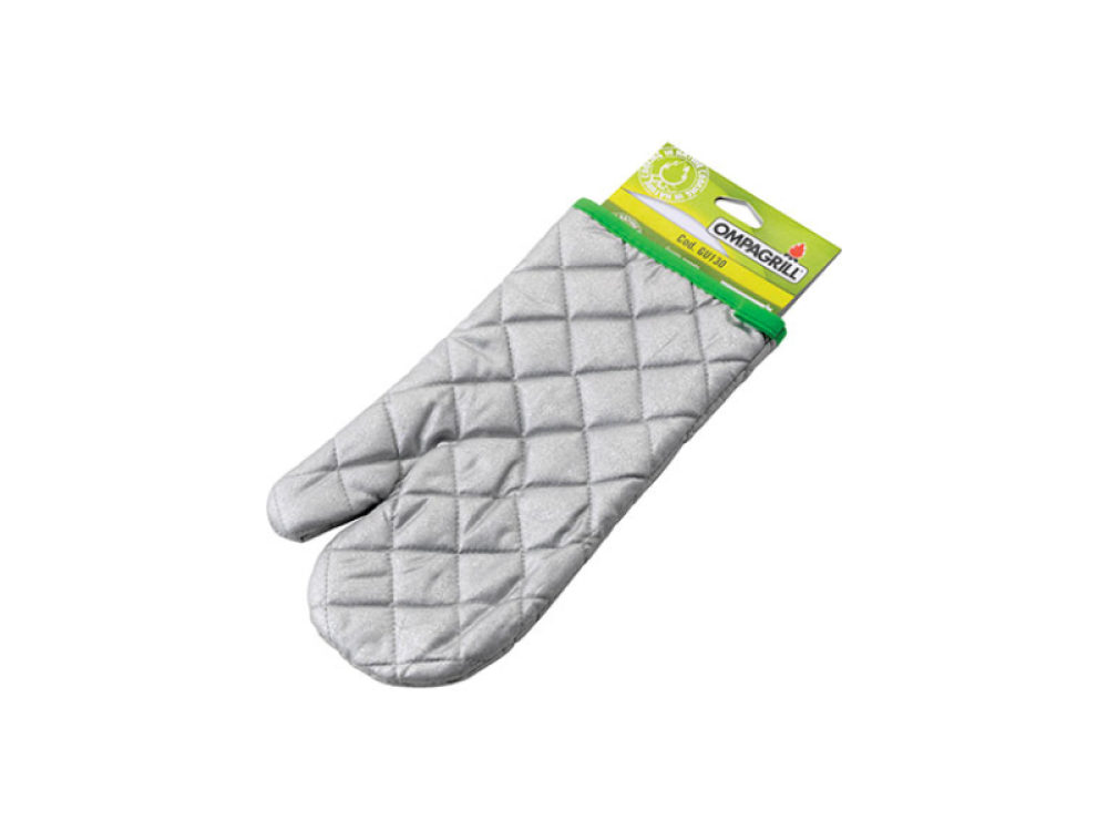 Une paire de gants de cuisine argentés de 31 cm, idéale pour protéger les mains de la chaleur directe du barbecue.