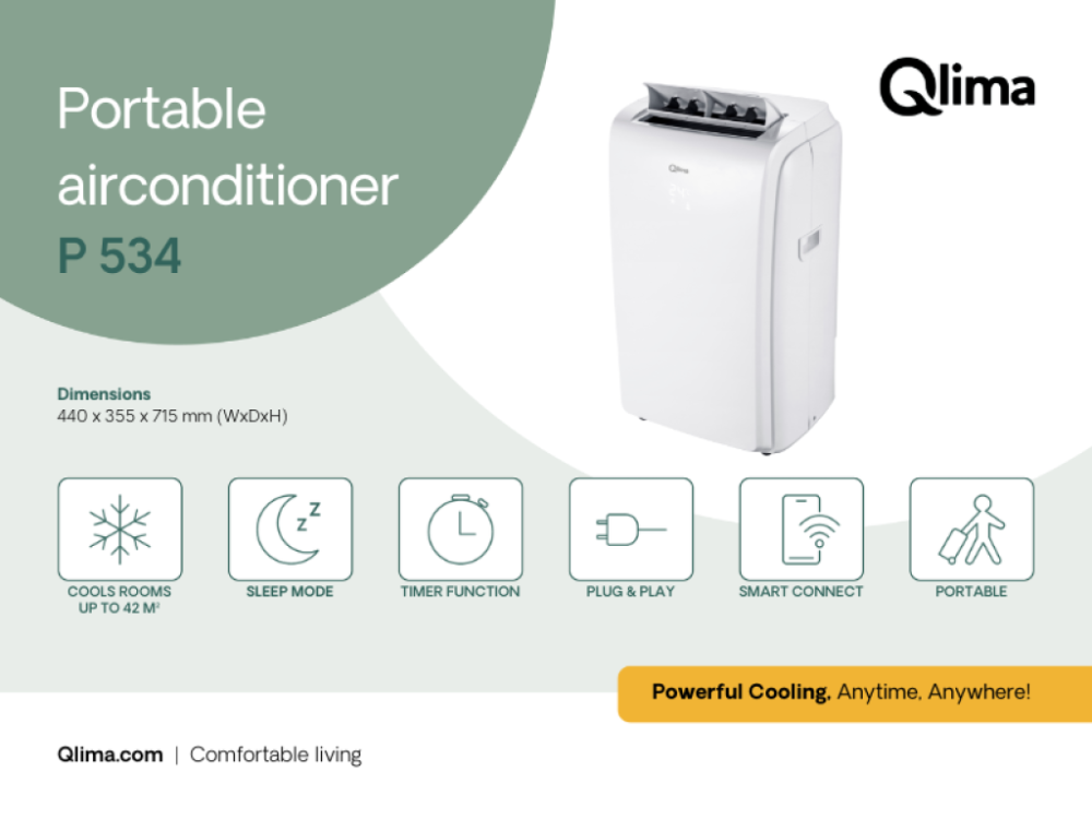 Caractéristiques techniques du climatiseur portable Qlima P534