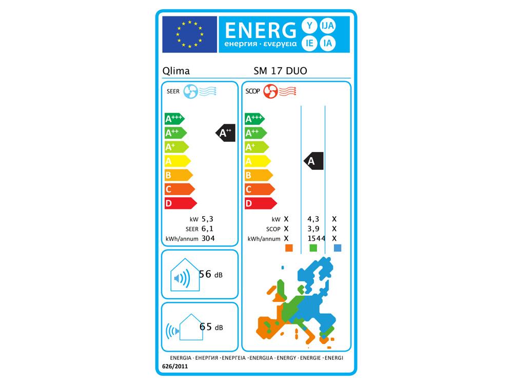 Caractéristiques techniques du climatiseur Qlima SM 17 DUO dual split
