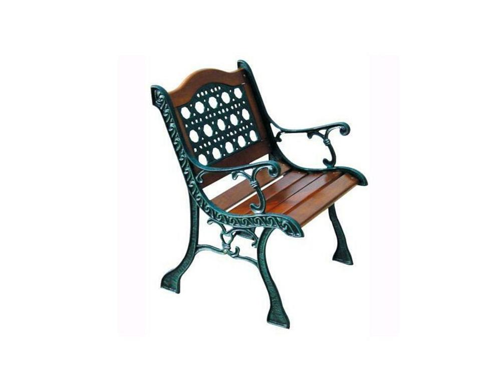 Fauteuil avec structure en fonte peinte en noir antique et lattes en bois naturel.