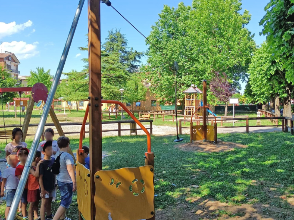L'équipement d'aire de jeux gonflable Illinois 292 de Giochipark est certifié conforme à la norme européenne EN 1176 par l'institut allemand TÜV - SÜD. Fabriqué en bois stratifié de pin nordique imprégné en autoclave avec des sels non toxiques, il garantit une résistance aux agents atmosphériques.