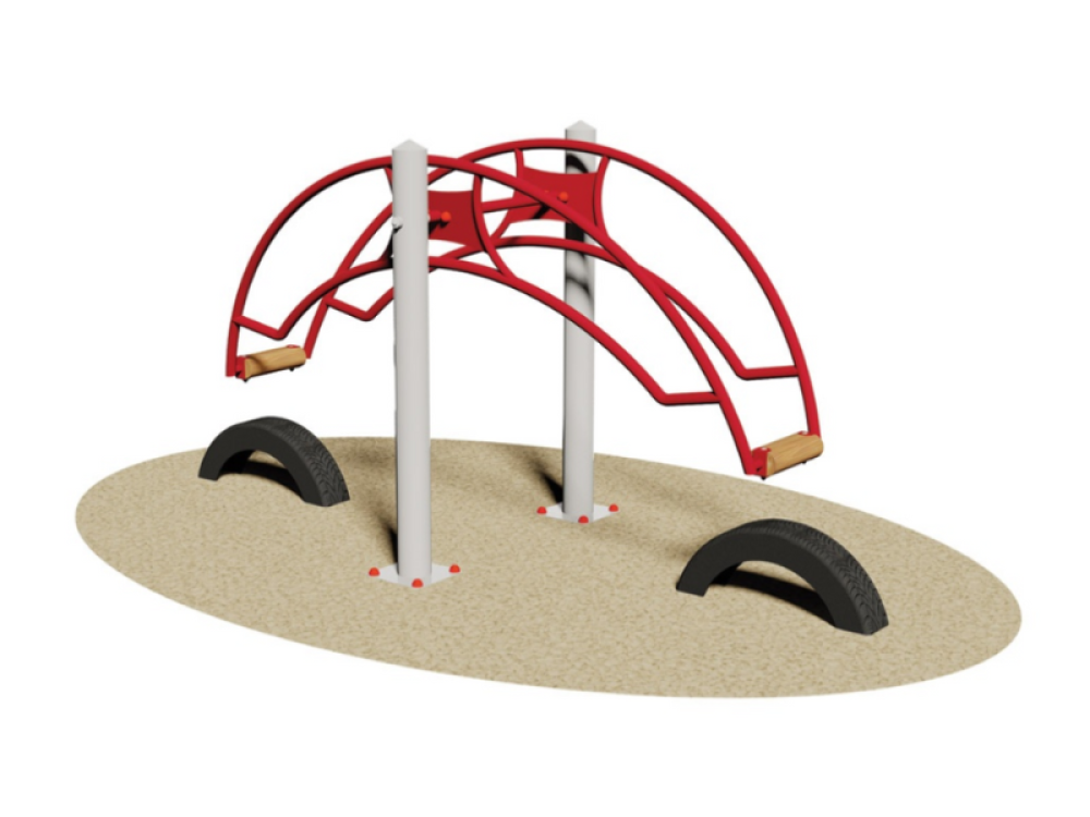 - Structure oscillante en tubes d'acier galvanisé Ø 3 et 4 cm, laqués au four.