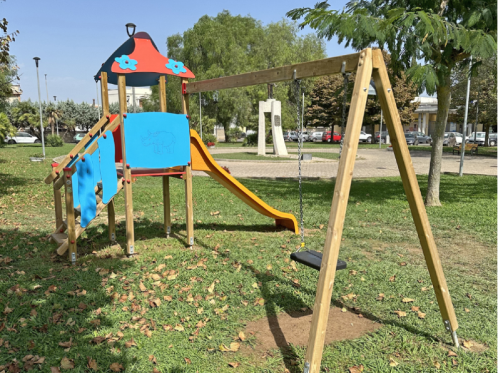 Le Calgary Turret 773 de Giochipark est une aire de jeux certifiée EN 1176 par l'organisme allemand TÜV - SÜD, conçue pour les enfants de 2 à 8 ans. La structure est réalisée en bois de pin nordique imprégné en autoclave avec des sels non toxiques, ce qui garantit une résistance aux intempéries et une longue durée de vie.