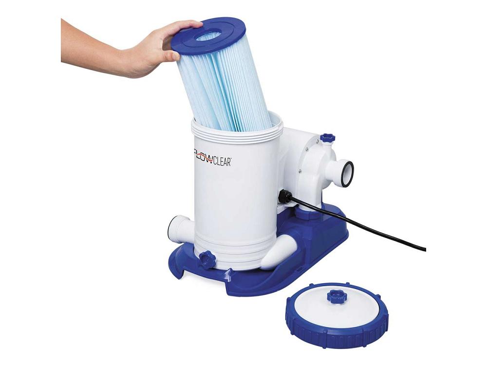 La pompe à cartouche filtrante pour piscine Bestway 58391 a un fonctionnement simple mais tout aussi efficace. Cette pompe Bestway filtre et assainit l'eau en la pompant hors de la piscine, à travers une cartouche filtrante et de nouveau dans la piscine une fois qu'elle a été nettoyée.