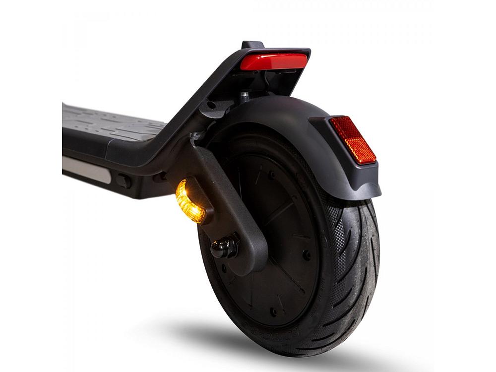 Toujours en matière de sécurité, le Velociptor Hero dispose d'un double système de freinage, combiné tambour et électronique à l'avant et électronique uniquement à l'arrière, de pas moins de quatre indicateurs de direction intégrés pour signaler facilement les manœuvres et de feux avant et arrière et de sous-bassements à LED avec clignotement automatique, pour garantir la visibilité même dans des conditions de faible luminosité.