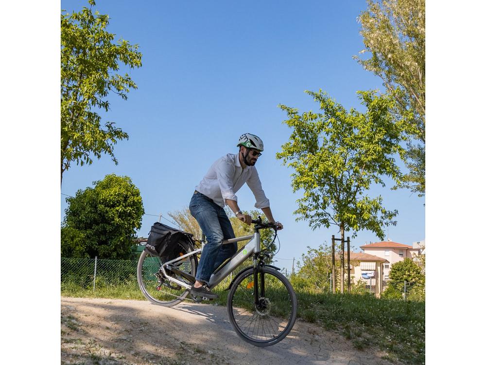Cadre en aluminium 19" durable, super autonomie avec batterie 13Ah intégrée et freins à disque avant et arrière. King est le nouveau vélo électrique polyvalent, confortable et sûr.