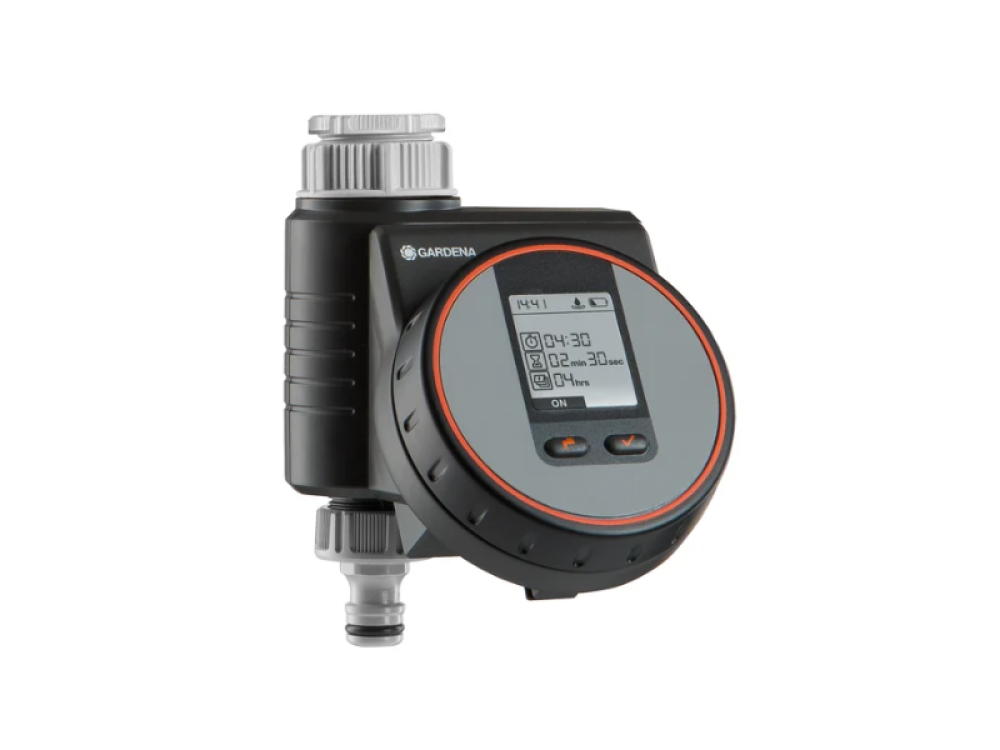 Il computer per irrigazione Gardena Flex 1890 è una soluzione compatta e funzionale per la gestione automatica dell’irrigazione su balconi, terrazzi e patio. Progettato per funzionare a batteria, si collega direttamente al rubinetto e consente una programmazione semplice e flessibile tramite manopola rotante e pulsante di conferma.